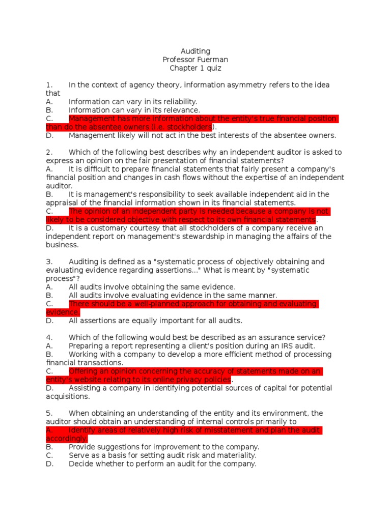 Auditing Chapter 1 Questions Pdf Auditor S Report Audit